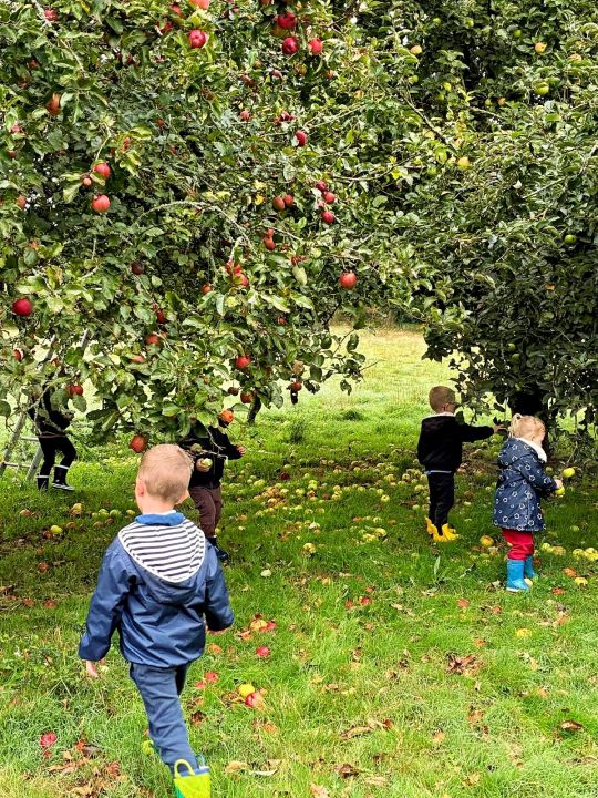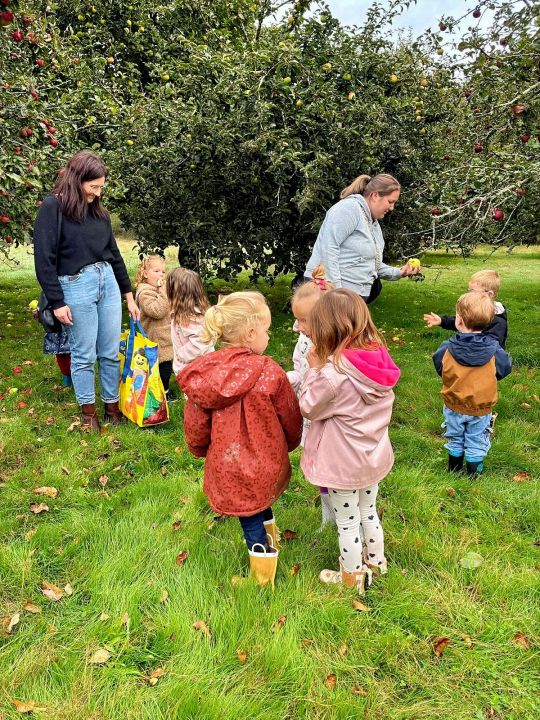 Les enfants ont cueilli avec enthousiasme pommes, feuilles et trésors de saison.