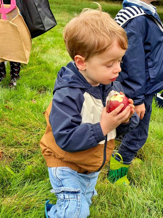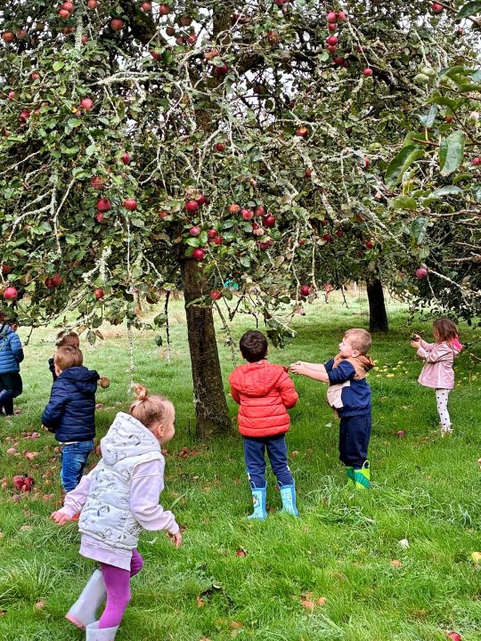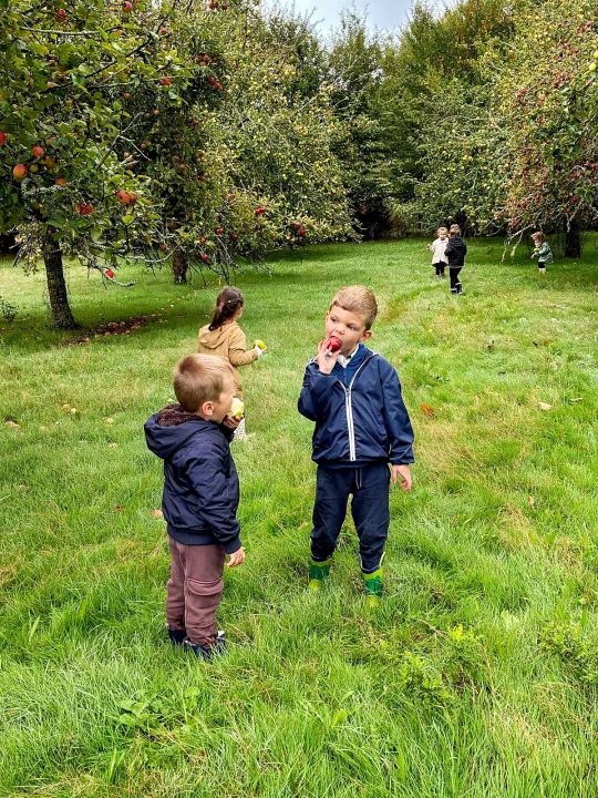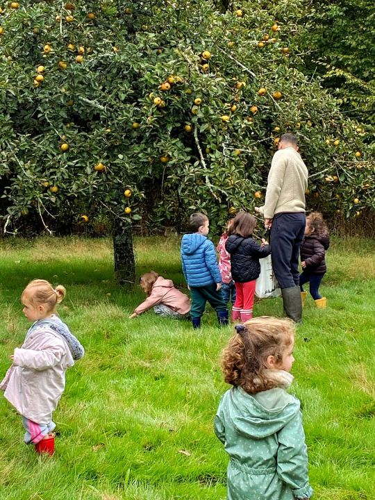 Les petites et moyennes sections de l’école ont vécu une belle sortie d’automne au verger, chez Monsieur et Madame Le Berre.